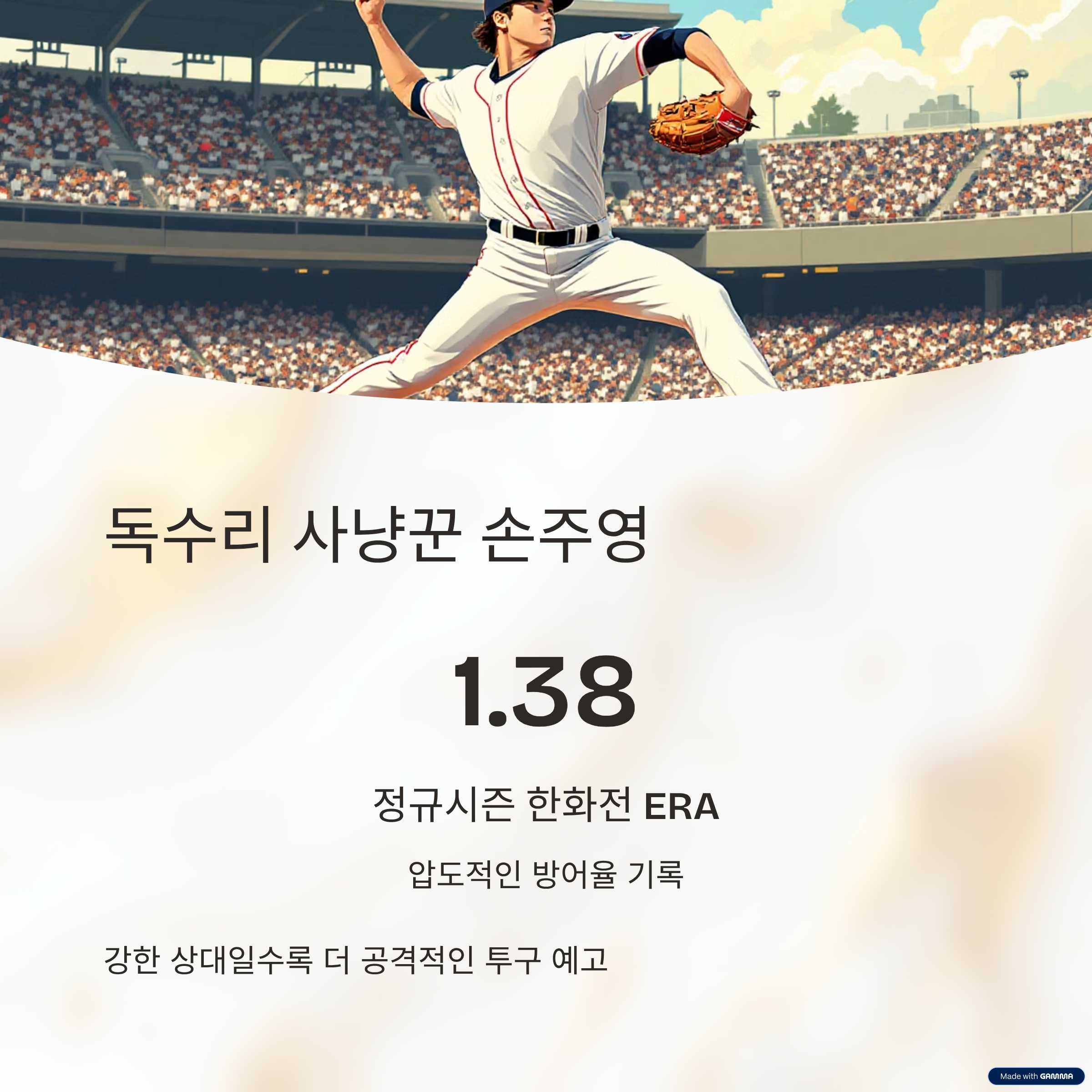 2경기에서 평균자책점 1.38, 피안타율 0.214로 한화 타선을 완벽히 제압했죠.